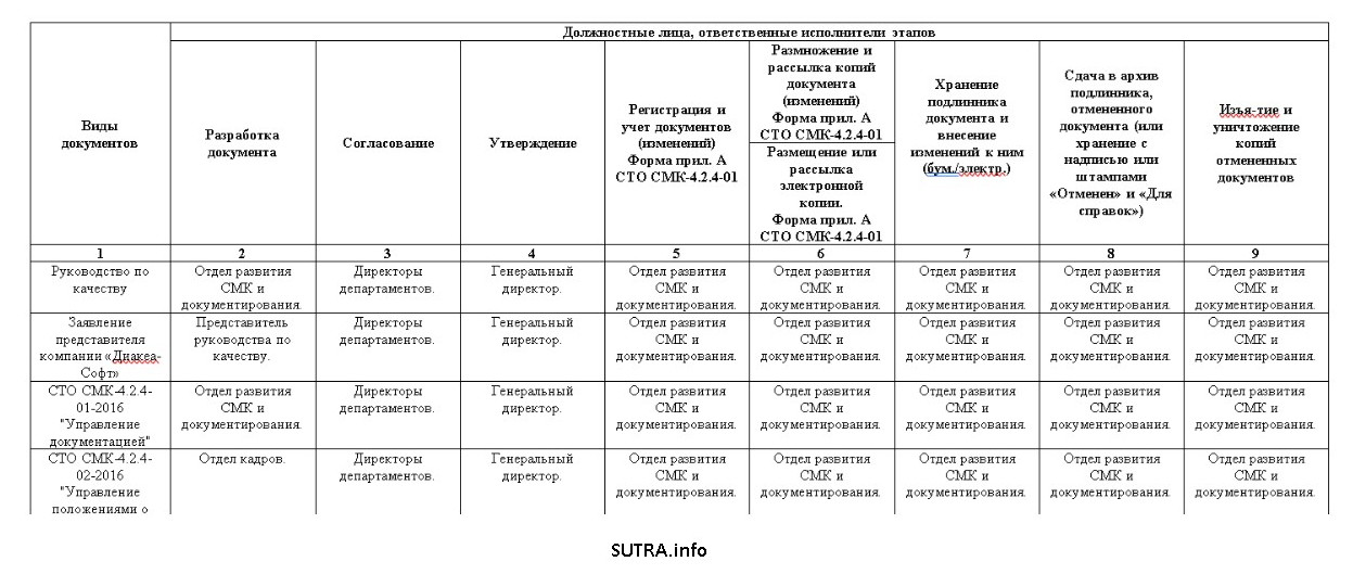 Иллюстрация. 4. Матрица распределения ответственности за документацию.