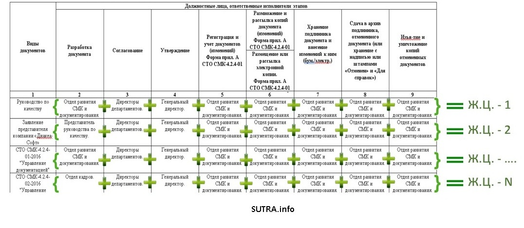 Этапы жизненного цикла документов согласно требованиям СМК можно представить в виде следующего списка: