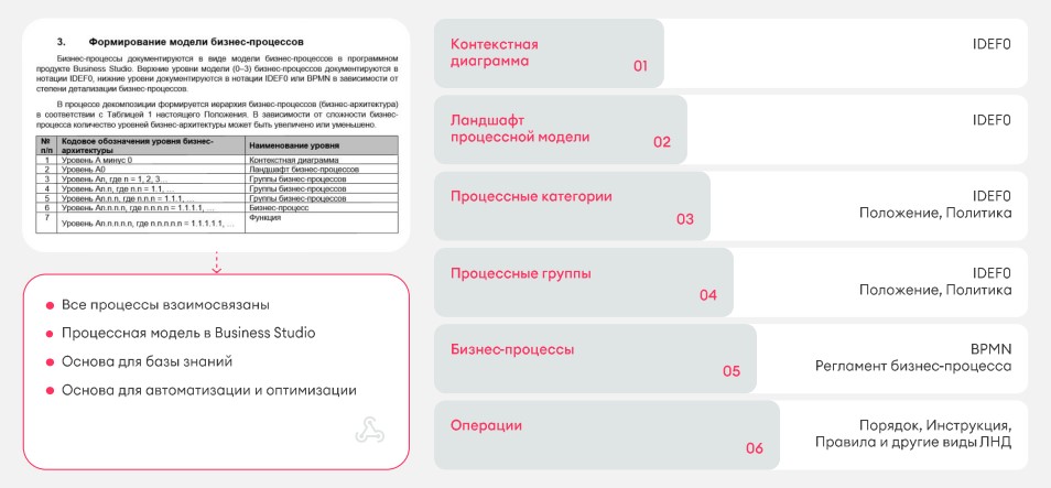 По факту реализации любого проекта мы формируем соответствующие регламенты бизнес-процессов, добавляем их в процессную модель компании и в дальнейшем актуализируем и оптимизируем.