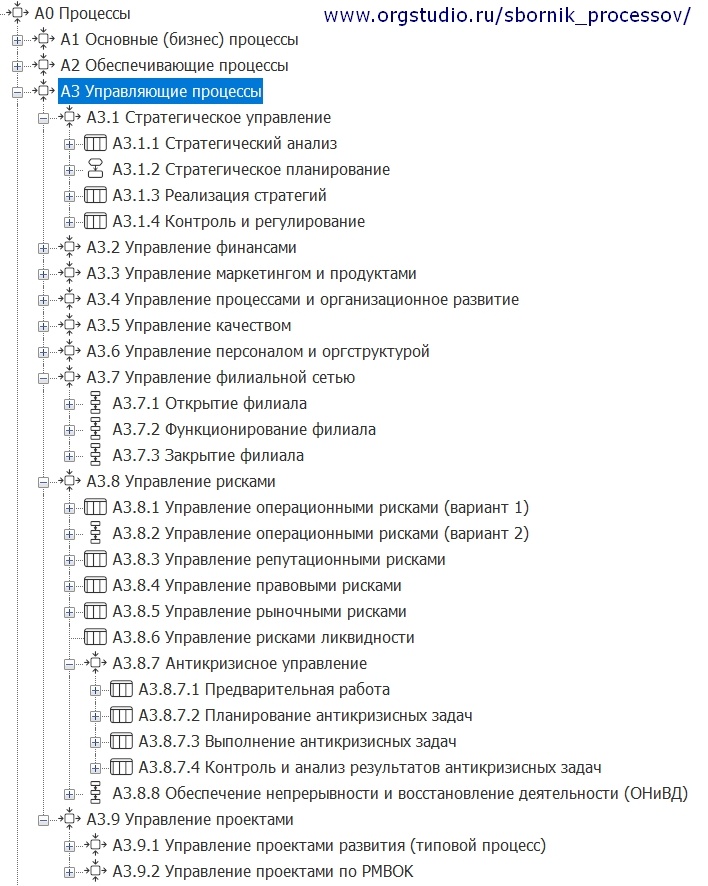 Рис. 2. Дерево обеспечивающих процессов (начало)