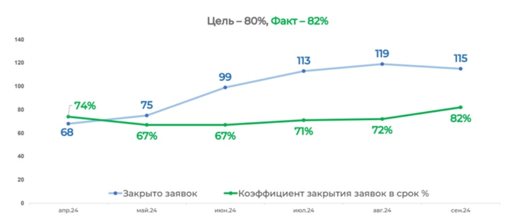 Инструмент помог в диалоге с владельцами процессов и исключил спорные ситуации: теперь наглядно видны причины проблем и способы их решения. Все данные по качеству мы фиксируем в единый дашборд – это удобно нашим сотрудникам.