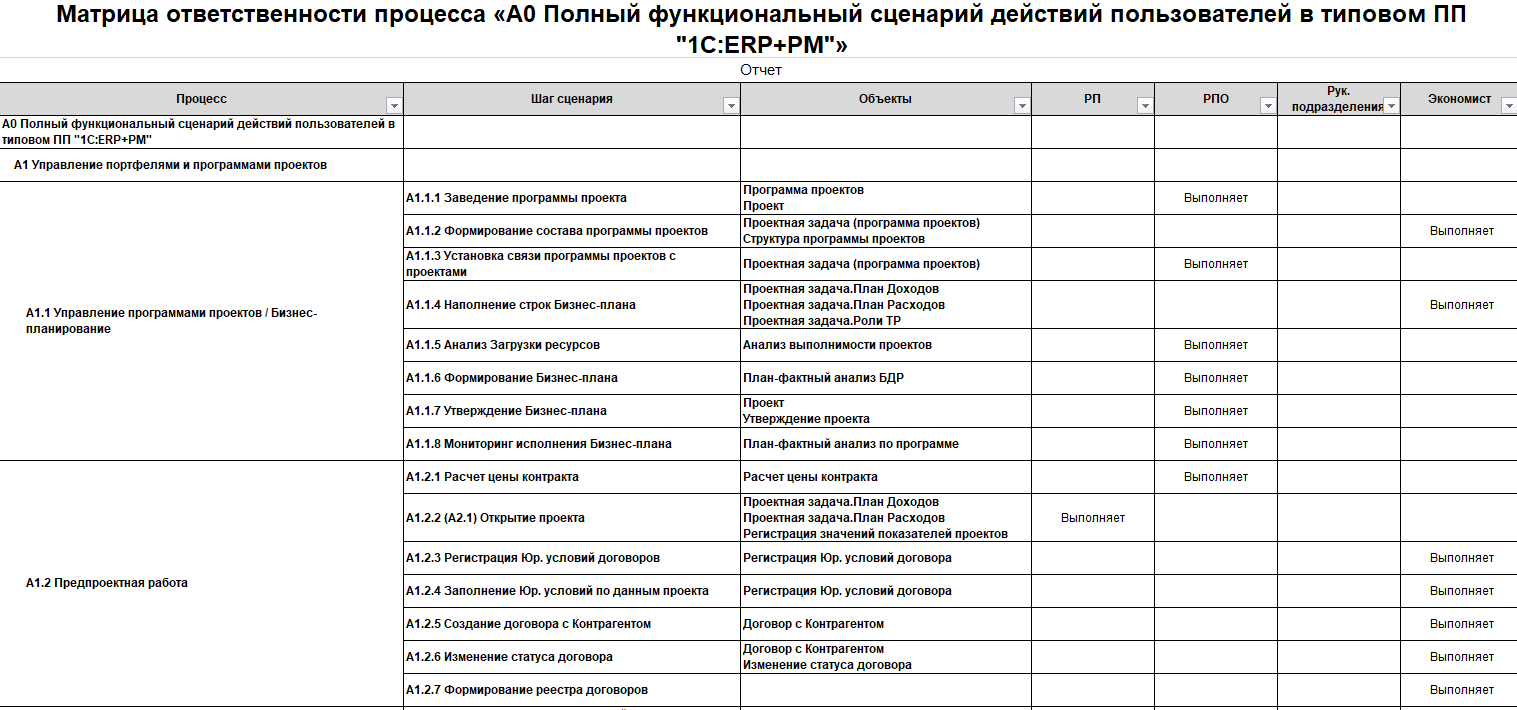 На основе сценария и матрицы ответственности процесса по ролям создается матрица для настройки прав доступа пользователей к объектам системы, которая также в дальнейшем трансформируется в матрицу прав доступа и ролевую модель информационной системы.