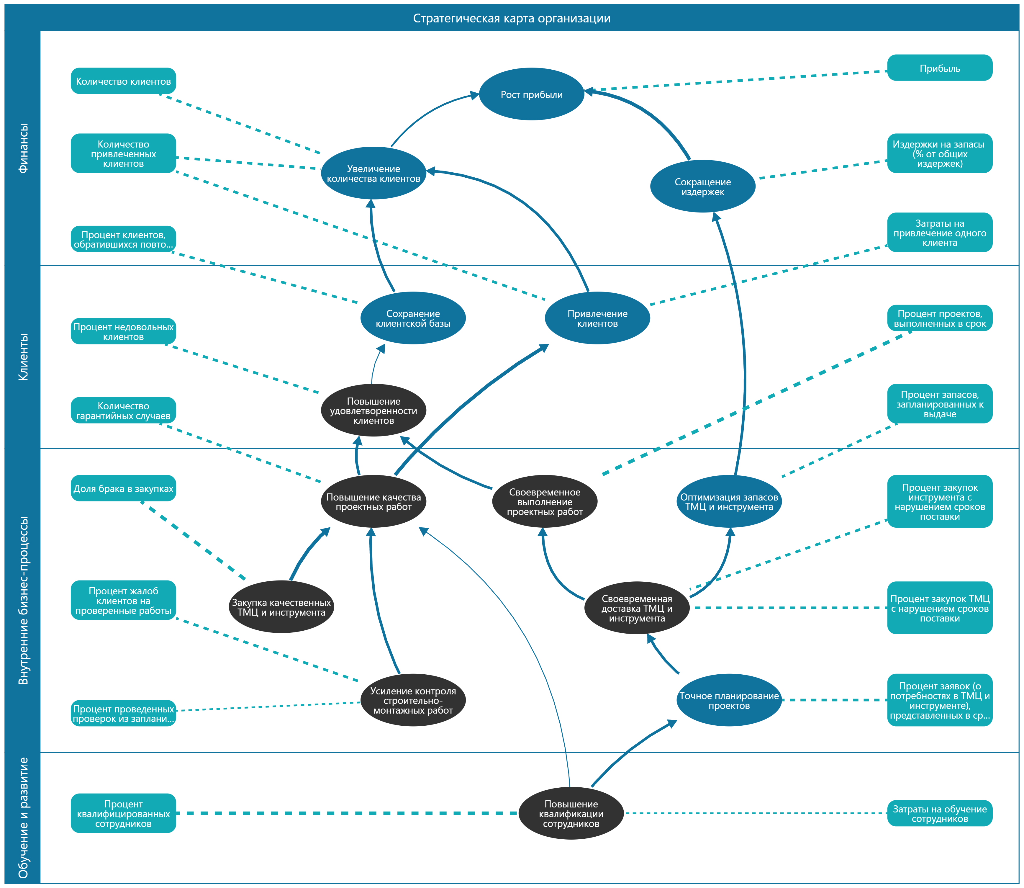 - На диаграмме стратегической карты при помощи направленных стрелок (Рис. 1).