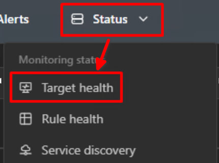 Убедитесь, что веб-интерфейс доступен и перейдите во вкладку Status → Target health (см. Рисунок 1):