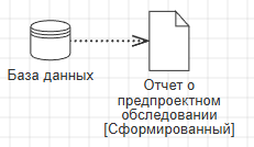 В случае если объект данных передается между двумя последовательно соединенными процессами, то можно создать связь класса «Ассоциация данных», которая свяжет фигуру объекта данных с потоком управления, созданным между двумя фигурами процессов. Такой коннектор строится в направлении от фигуры объекта данных к потоку управления (рис.16).