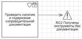 Задача или подпроцесс также может являться контрольной процедурой риска. Для отображения этого факта необходимо добавить связь от задачи/подпроцесса к риску и выбрать класс связи «Контрольная процедура риска». У задачи/подпроцесса в углу появится маркер щита (рис. 20).