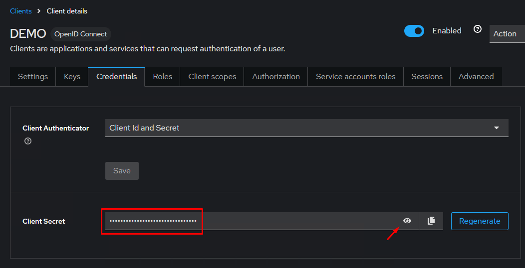 Сохраните изменения. Скопируйте значения параметров Client ID и Client Secret (вкладки Settings и Credentials) и укажите их в переменных BS_BACKEND_OPENID_CLIENT_ID и BS_BACKEND_OPENID_CLIENT_SECRET файла .env (см. Рисунок 5 и 6).