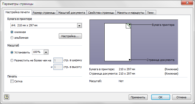 На вкладке Настройка печати (Рис. 21) указываются размеры листа бумаги и масштаб печати диаграммы. Доступный выбор зависит от типа принтера.