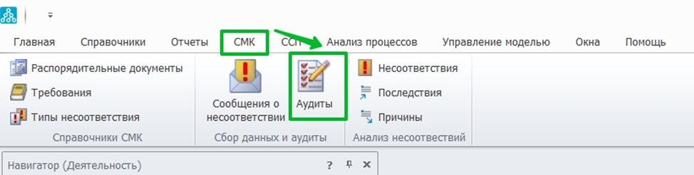 Аудиты в Business Studio располагаются в модуле «СМК»: