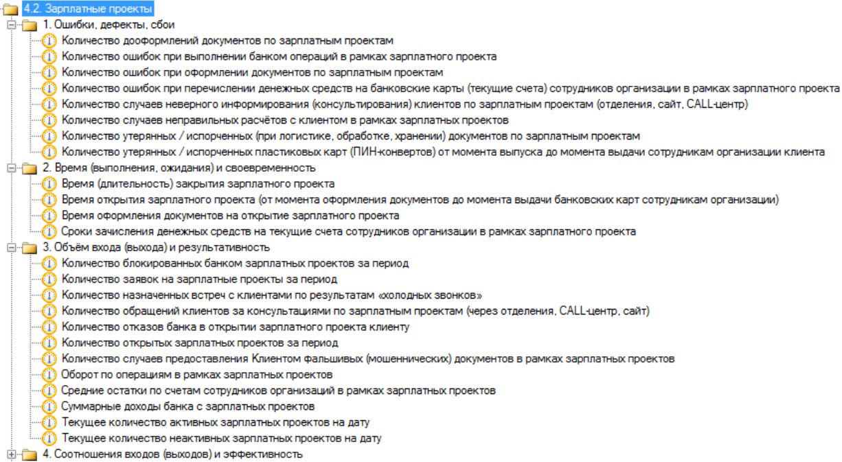 Рис. 5. Показатели KPI бизнес-процесса банка (фрагмент)