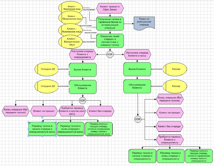 В рамках проекта было необходимо визуализировать процессы продаж и обслуживания клиентов розничной сети в офисах Банка, а также все внутренние процессы, выполняемые розничными сотрудниками офисов. Для каждого процесса устанавливается метрика и механизмы по контролю над соблюдением целевых значений метрик. Таким образом, по розничным офисам должна быть сформирована итоговая нагрузка сотрудников по процессам и распределение трудозатрат по процессам.