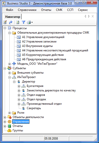 В Business Studio приведены примеры процедур, которые являются обязательными для документирования в рамках стандарта ISO 9001:2000: