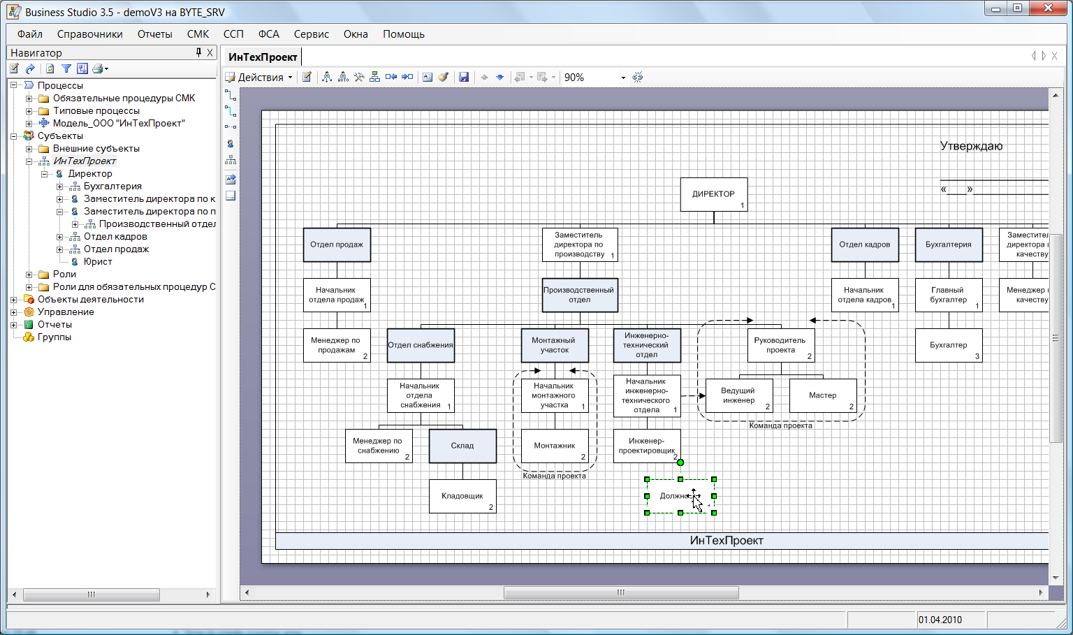 Рис. 3. Создание организационной структуры в Business Studio 3.5