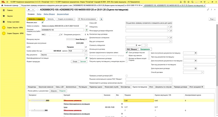 Аналогично отрабатывались все остальные ответственные контролеры-согласователи, в числе которых служба безопасности. Нам нужно было сдвинуть фокус их участия с самого контракта в предконтрактную фазу, где определялся контрагент. Мы создали им условия для рейтингования и оценки коммерческих предложений поставщиков по критерию благонадежности, разработали шкалу, автоматизировали рабочее место в ERP. Для них это был прорыв.