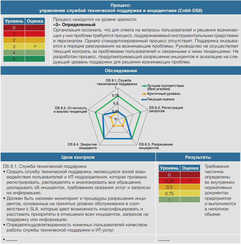 Таблица 2. Пример результатов исследования области контроля «Управление службой технической поддержки и инцидентами (Cobit-DS8)»