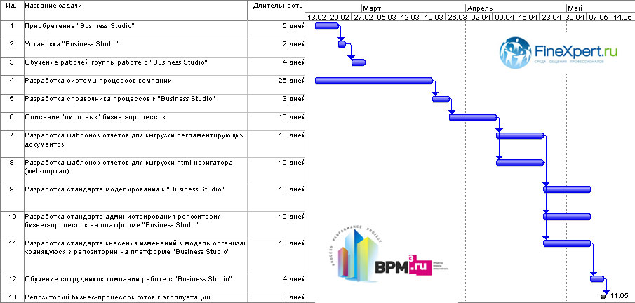Рис. 3. График Ганта внедрения репозитория бизнес-процессов на платформе Business Studio