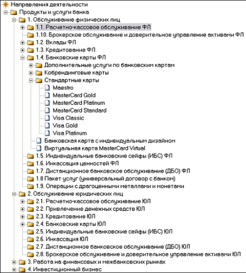 Рис. 4. Модель продуктов и услуг банка (верхний уровень)