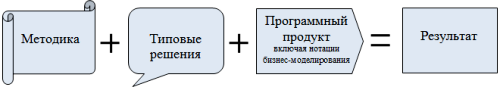 - Типовые решения, примеры, наработки и материалы. Чтобы не разрабатывать большую часть материалов с нуля и не совершать ошибок, которые уже прошли другие специалисты, необходим набор типовых решений, моделей, документов и т. п. Например, электронная база данных (справочник) «Комплексная типовая бизнес-модель коммерческого банка» [1].