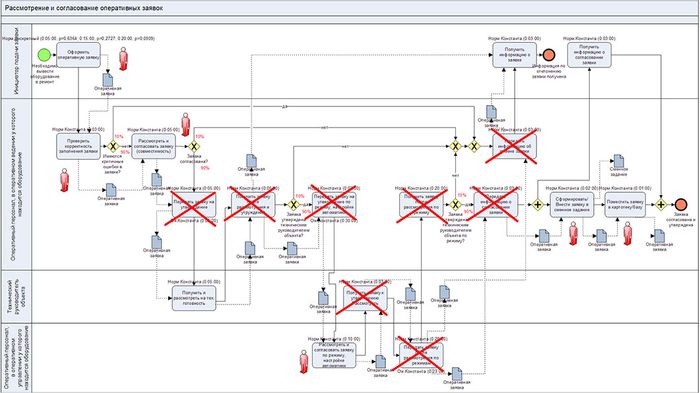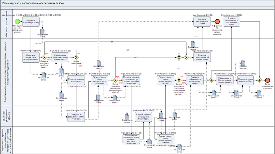В данной статье рассматривается имитационная модель реального процесса «Рассмотрение и согласование оперативных заявок» крупной промышленной компании. Используемый инструмент имитационного моделировании — Business Studio 4.2.