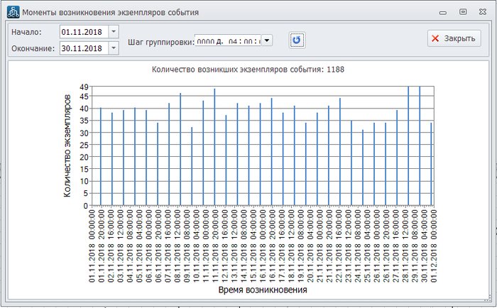 Имитация процесса проводилась для одного месяца — ноября 2018 г. По результатам имитации получены следующие данные: