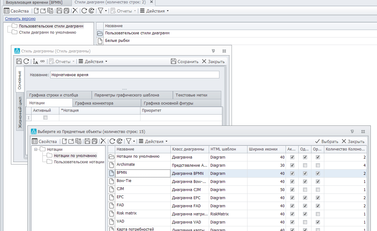На рисунках 9-17 показан способ визуализации нормативного времени при использовании встроенного редактора и стилей в Business Studio 6.