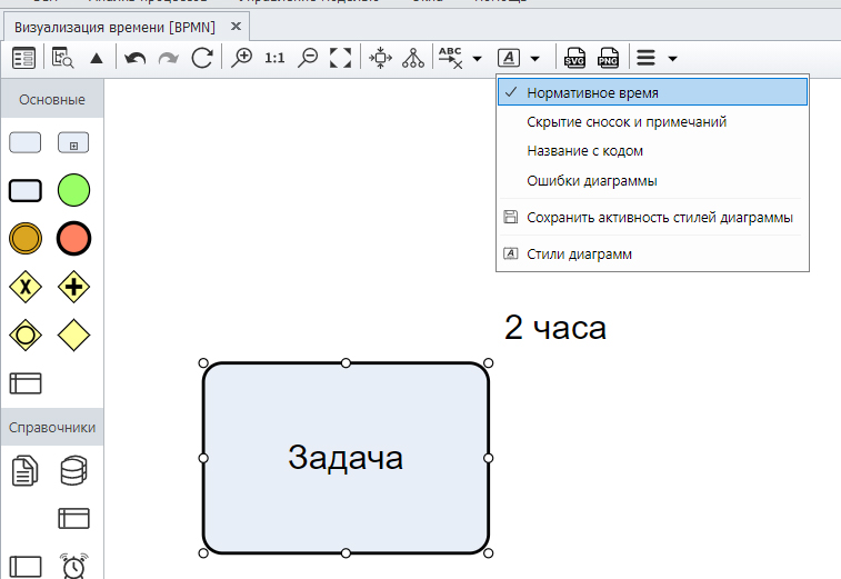 Нормативное (регламентное) время – это время, в течение которого исполнитель должен выполнить задачу. В нотации BPMN моделирование нормативного времени не предусмотрено. Но на практике часто требуется показать это время на схемах. Как быть? Нужно использовать функциональные возможности инструмента, в котором вы работаете.