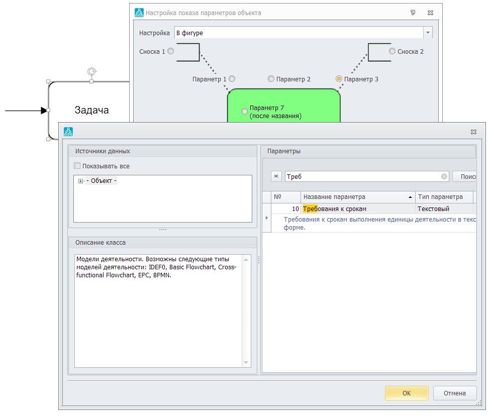 При использовании редактора MS Visio время можно вывести, заполнив атрибут задачи «Требования к срокам». Но интерпретировать его можно по-разному: как нормативное время или как предельное время выполнения. Если вы хотите задавать и визуализировать оба времени, то придется создать дополнительный атрибут с использованием редактора классов и параметров MetaEdit.