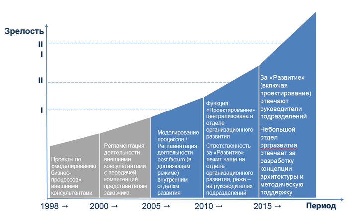 Бизнес приглашает внешних экспертов для моделирования и регламентации процессов, привлекаются консультанты и выполняют эту работу «под ключ».