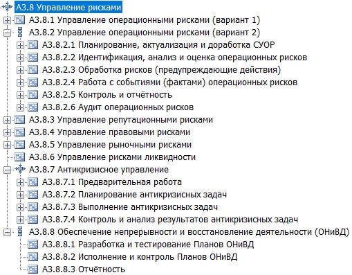 Рис. 3. Дерево (реестр) процессов и процедур по управлению рисками, фрагмент