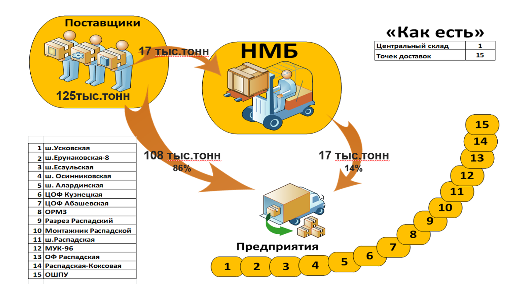 Вторым шагом — полностью отказаться от крупной распределительной материальной базы. Весь грузопоток направился напрямую на склады управляемых предприятий.