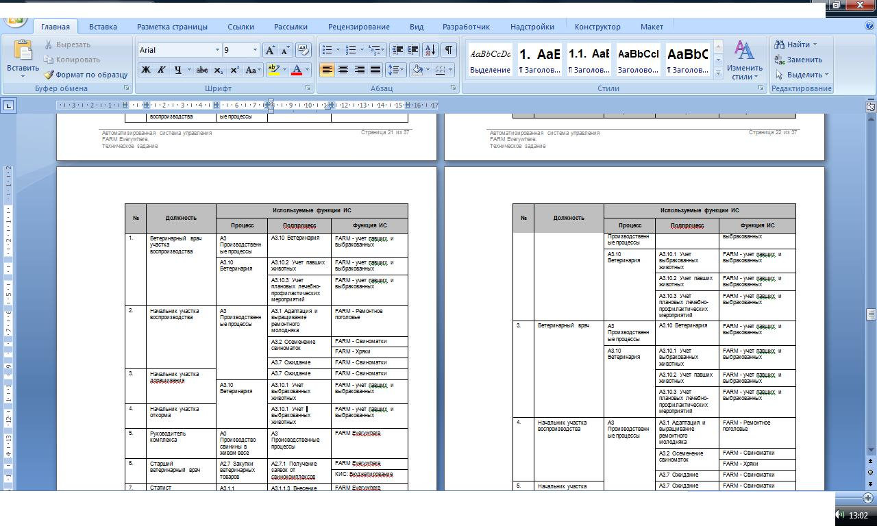 Благодаря возможности формирования регламентирующей документации в Business Studio, в программе было сгенерировано Техническое задание (Рис. 2) на автоматизацию системы менеджмента фермы.