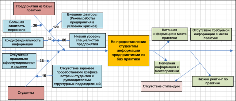 Рис. 10. Модель анализа причин не предоставления студентам информации предприятиями из баз практики (диаграмма Исикавы)