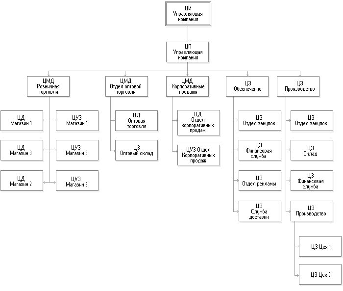 | 1.1.1. Центр маржинального дохода «Розничная торговля» | Направление розничной торговли | Зам. директора предприятия Х по розничной торговле |