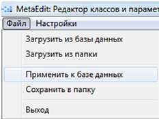 Нужные нам пользовательские параметры мы создали. Теперь необходимо выгрузить их в соответствующую базу данных. Для этого воспользуемся командной «Применить к базе данных» меню «Файл» (Рисунок 17):