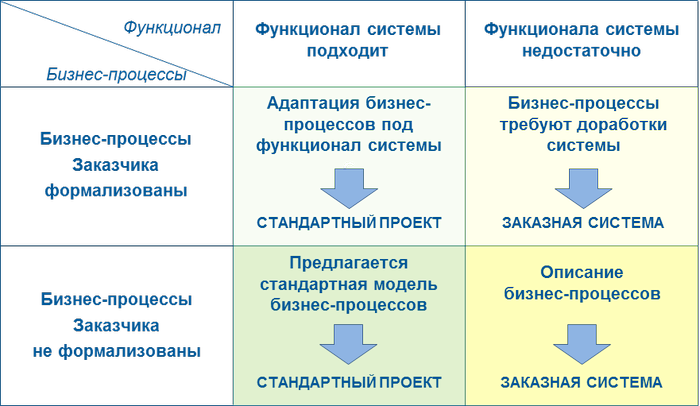 Если типовой функционал нашей системы в большей степени устраивает Заказчика и интегрируется в существующие