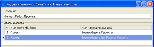 Соответствие параметров Работ проекта задаются на соответствующих вкладках пакета импорта: