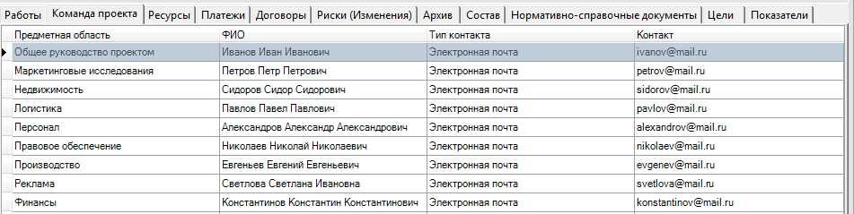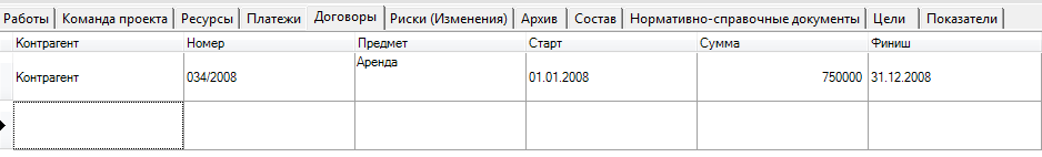 Рисунок 5. Договоры проекта