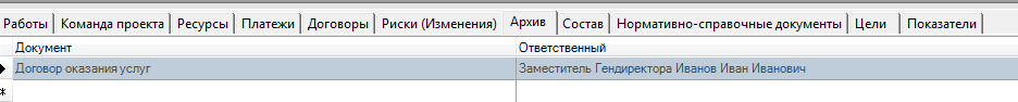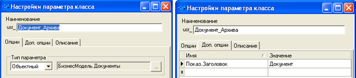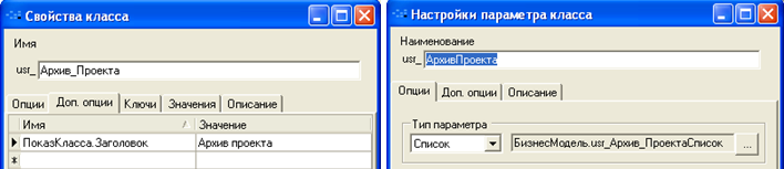 Для закладки «Архив проекта» параметры списка и параметр класса «Проекты»: