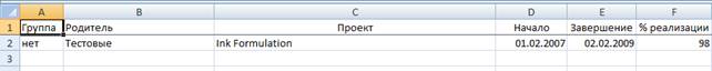 В столбце «Группа» записывается логический признак (Да/Нет) — является ли проект группой (