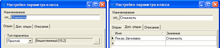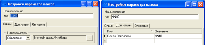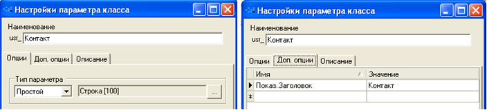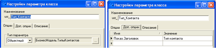 Для закладки «Ресурсы проекта» параметры списка и параметр класса «Проекты»: