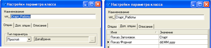 «Старт работы» и «Финиш работы» (аналогично):