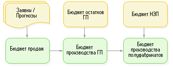 Для составления логической схемы функциональных бюджетов необходимо использовать процессную модель предприятия. Доработка процессной модели заключается в выделении тех потоков, которые могут быть представлены (запланированы) в виде бюджетов, и в указании логических взаимосвязей между этими бюджетами. Таким образом, в результате получается схема, сопоставляющая бюджеты и процессы, а также формирующая график составления и корректировки бюджетов.