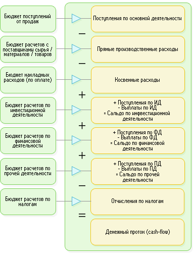 Результирующим бюджетом данной модели является Бюджет Движения Денежных Средств (БДДС). Цель его составления — управление платежеспособностью (ликвидностью) предприятия.
