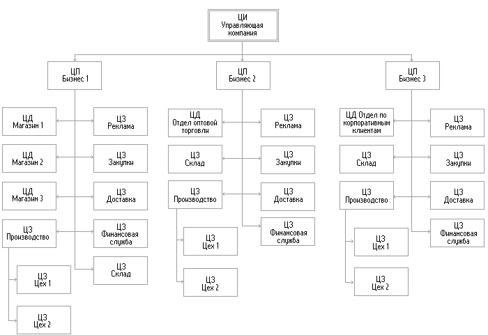Можно сформулировать три основных метода выделения ЦФО на основе организационной структуры: