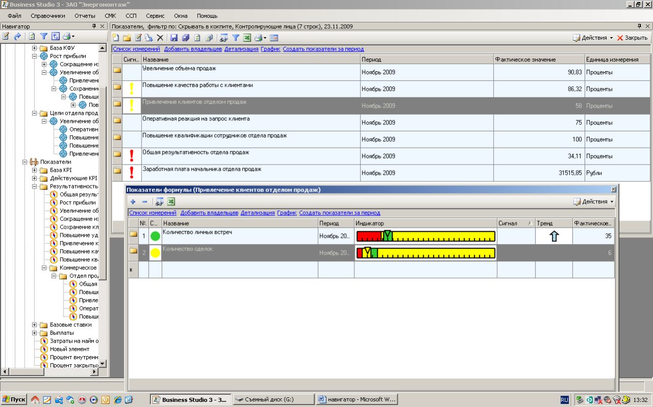 | Привлечение клиентов отделом продаж | Привлечение клиентов | % | 100 | ноя.09 | 100 | 58 | |