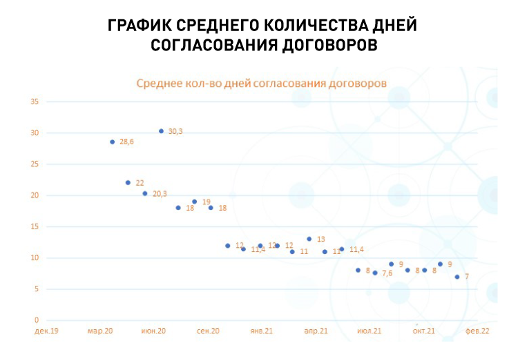 В результате работ средний срок согласования договоров был сокращен до семи дней.