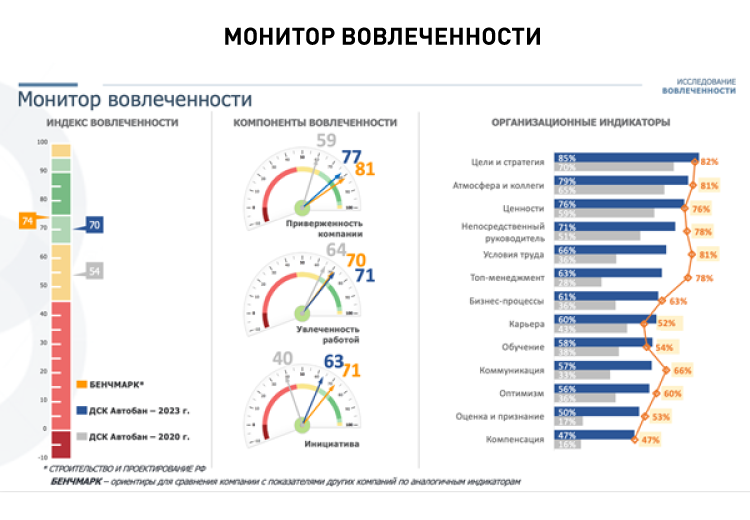 Внедрение изменений невозможно без формирования корпоративной культуры, ключевым фактором которой является вовлеченность сотрудников. Поэтому для нас было важно понять, где мы находимся сейчас, определить целевые показатели вовлеченности и проводить планомерную политику по их достижению.