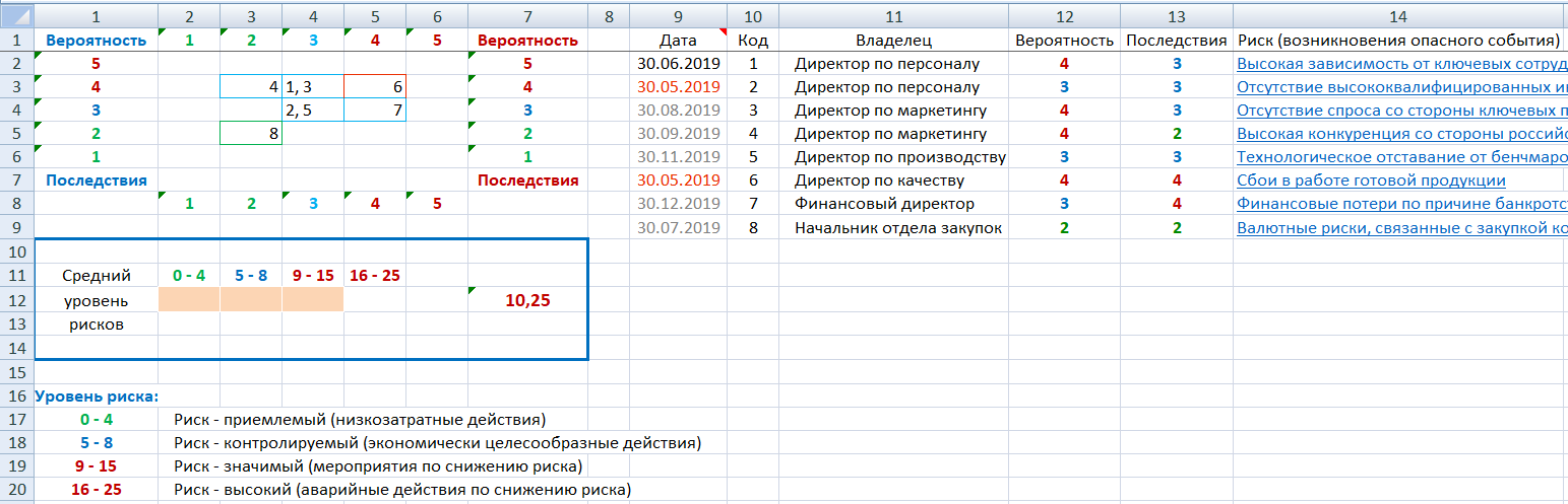Рис. 8. Лист «Матрица рисков» Excel-отчета по мониторингу
