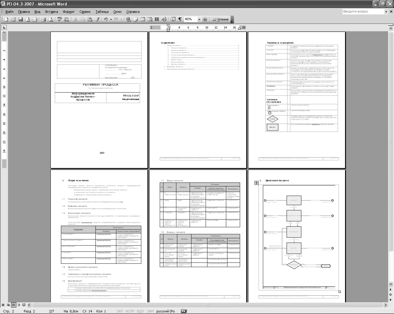 Схема 4. Пример регламента процесса в формате Microsoft Word