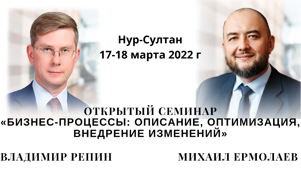Мероприятие проведут одни из самых авторитетных экспертов в процессном управлении в России и Казахстане - Владимир Репин (Российская Федерация) и Михаил Ермолаев (Республика Казахстан).